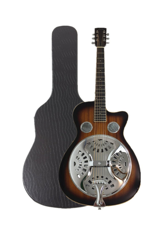 Haze SDG738 All-Mahogany Roundneck Resonator Guitar, Tobacco Sunburst with Bag