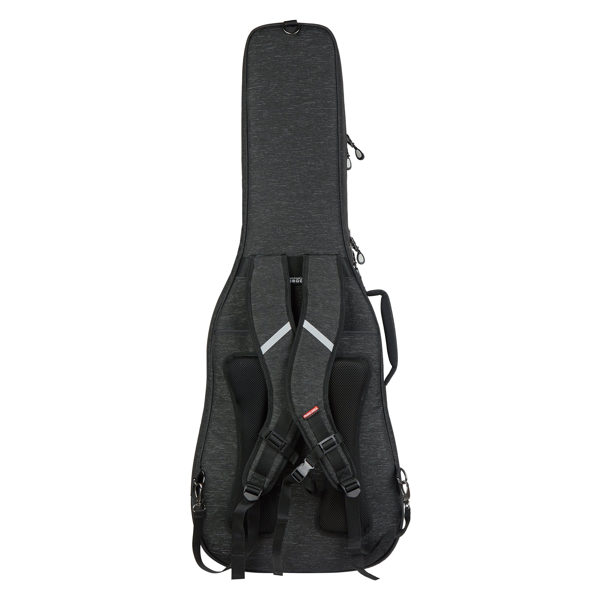Music Area TANG30 series features ultra-thick pads all over the interior of the case, 30mm padding with 6 layers, water-repellent 900D polyester, neck cradle with velcro lock, removable bumper for protecting the strap button, it also provides a large accessories pocket with different compartments.