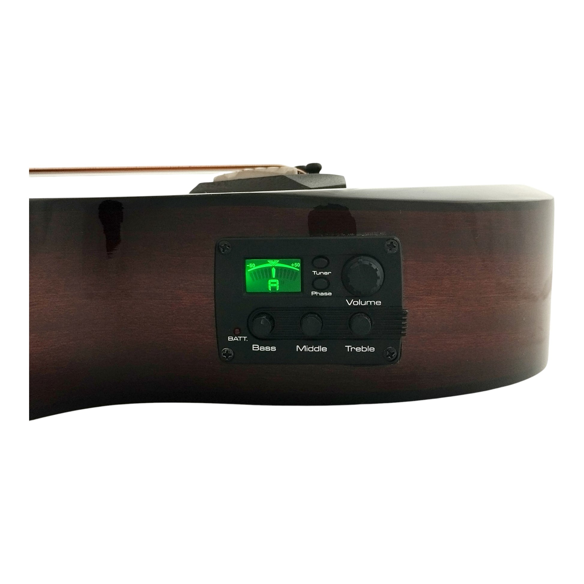 The chrome tuners ensure precise tuning, while the 19 guitarlele strings provide the traditional guitarlele sound with an added dimension of complexity. The gloss finish on the top, back, and sides of the guitarlele gives it a lustrous sheen that enhances its overall appeal.