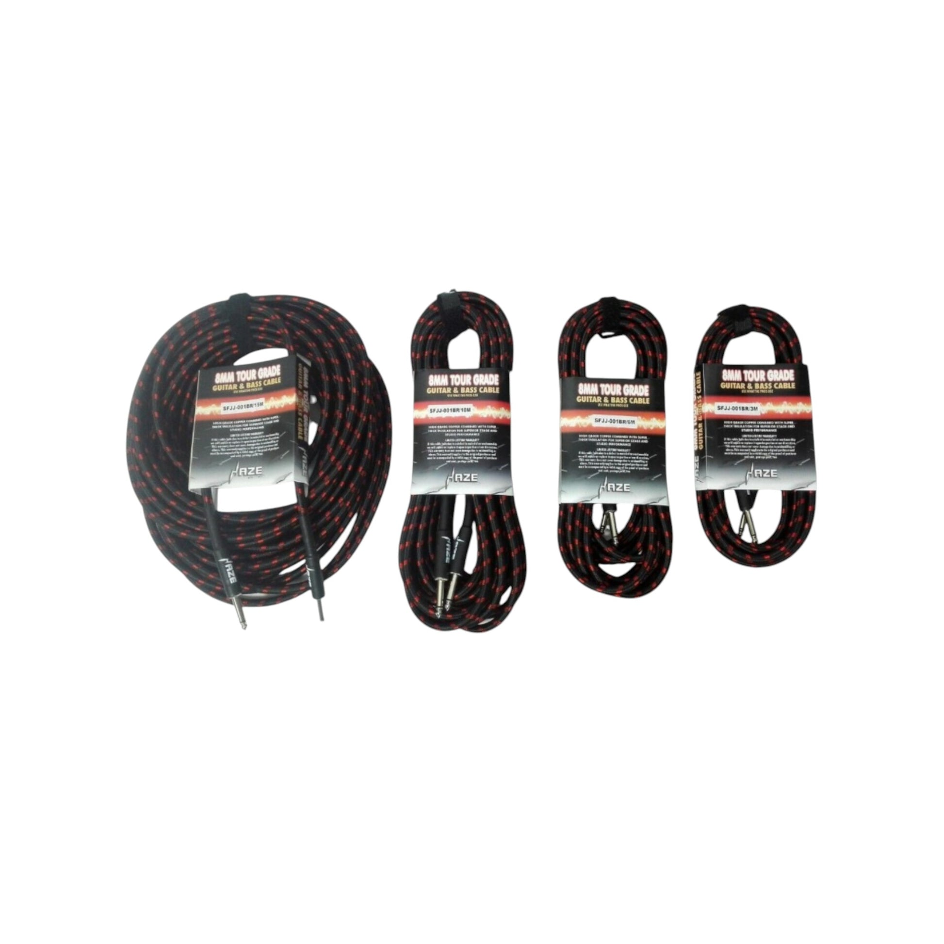 Haze Tour Grade Braided Tweed Guitar/Instrument Cable/Lead,3m,6m,10m,15m Bk+Rd SFJJ-001
