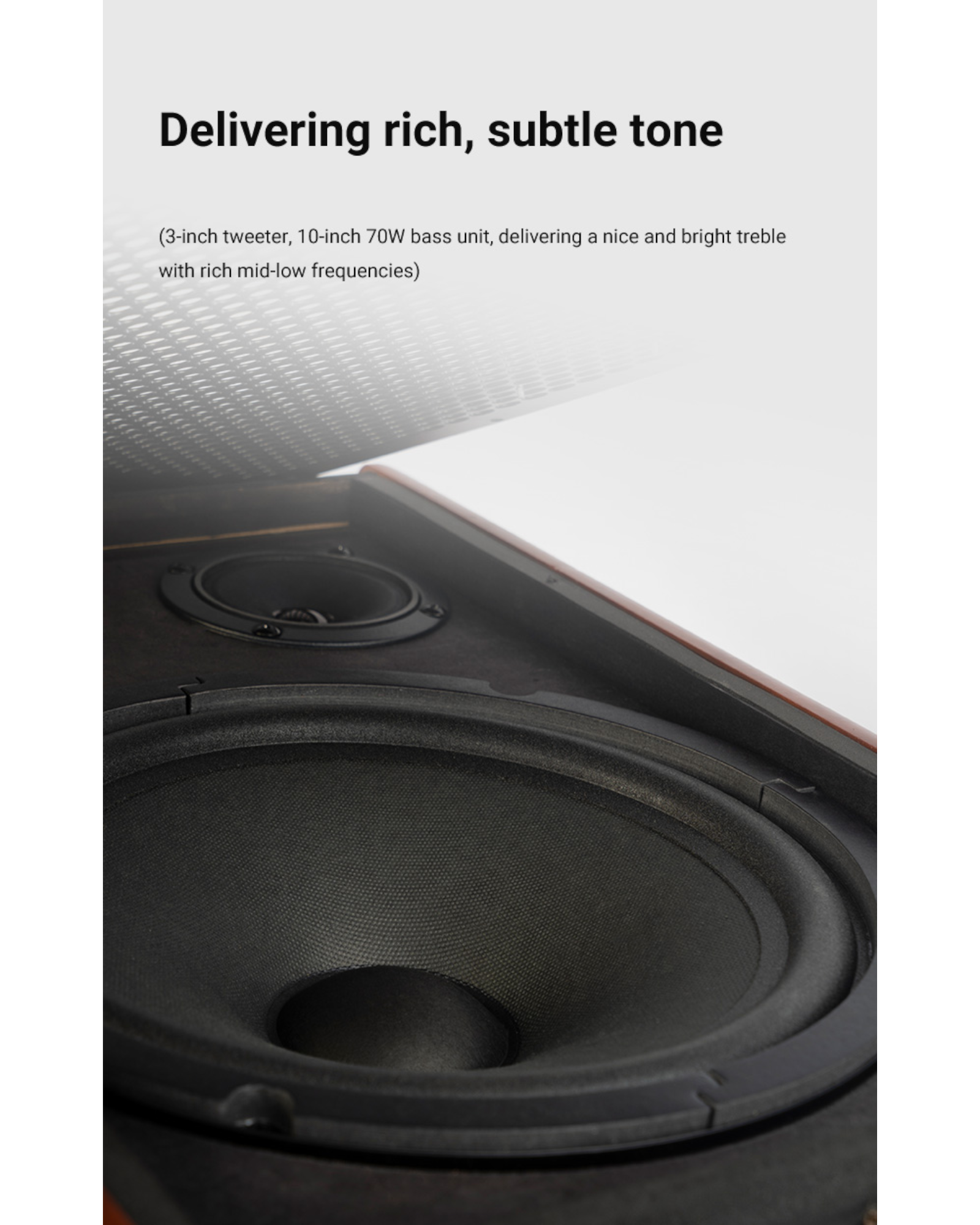 Speakers: Bass ( 10in, 4Ω, 70W ) / Treble ( 3in, 4Ω, 30W )