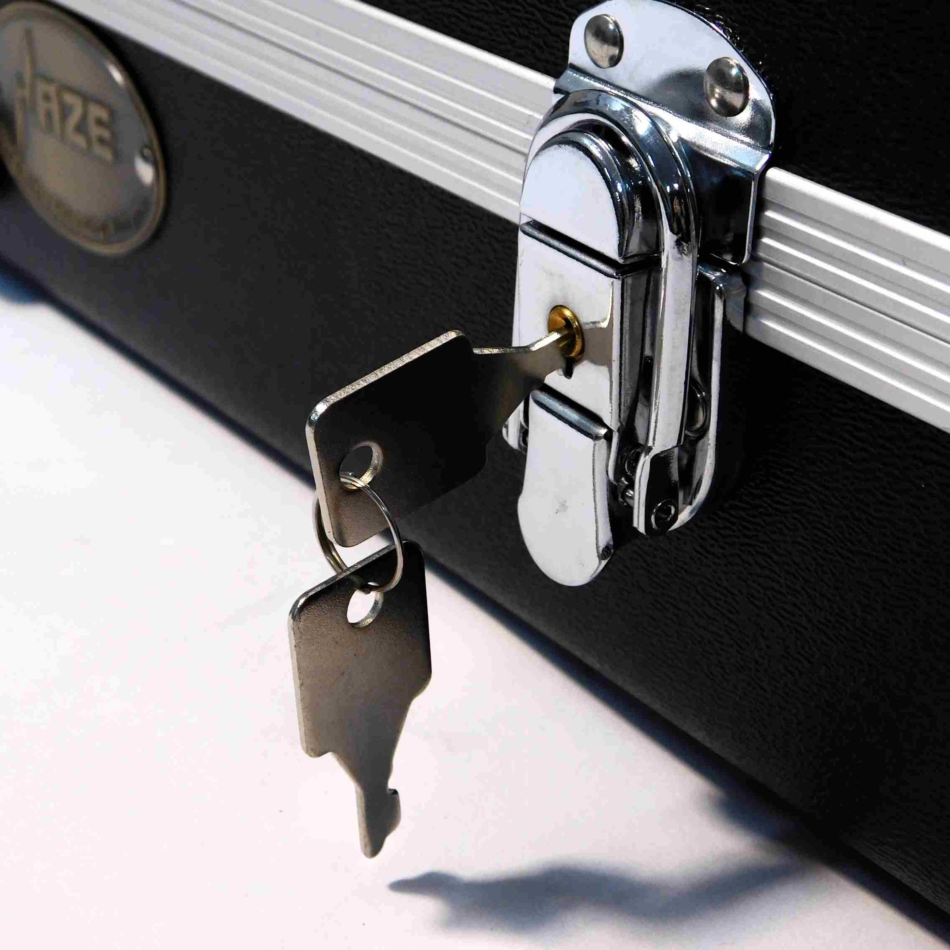 Features: The HCBEF20ABS Haze electric guitar hard case offers a range of features to keep your instrument safe and secure during transport. Its tough ABS construction is reinforced with ultra-strong extruded aluminium edging, while the re-designed exterior includes larger bumper-protected corners for added convenience. The fitted interior provides full neck support and Deluxe Plush protection on all sides, ensuring that your guitar is shielded from bumps and scratches. The hard case also includes a strong handle, making it easy to carry, and a chrome key locker, which provides added security when you're on the move. HCBEF20ABS is an excellent choice for anyone looking for a high-quality, reliable Hardcase for their electric guitar.