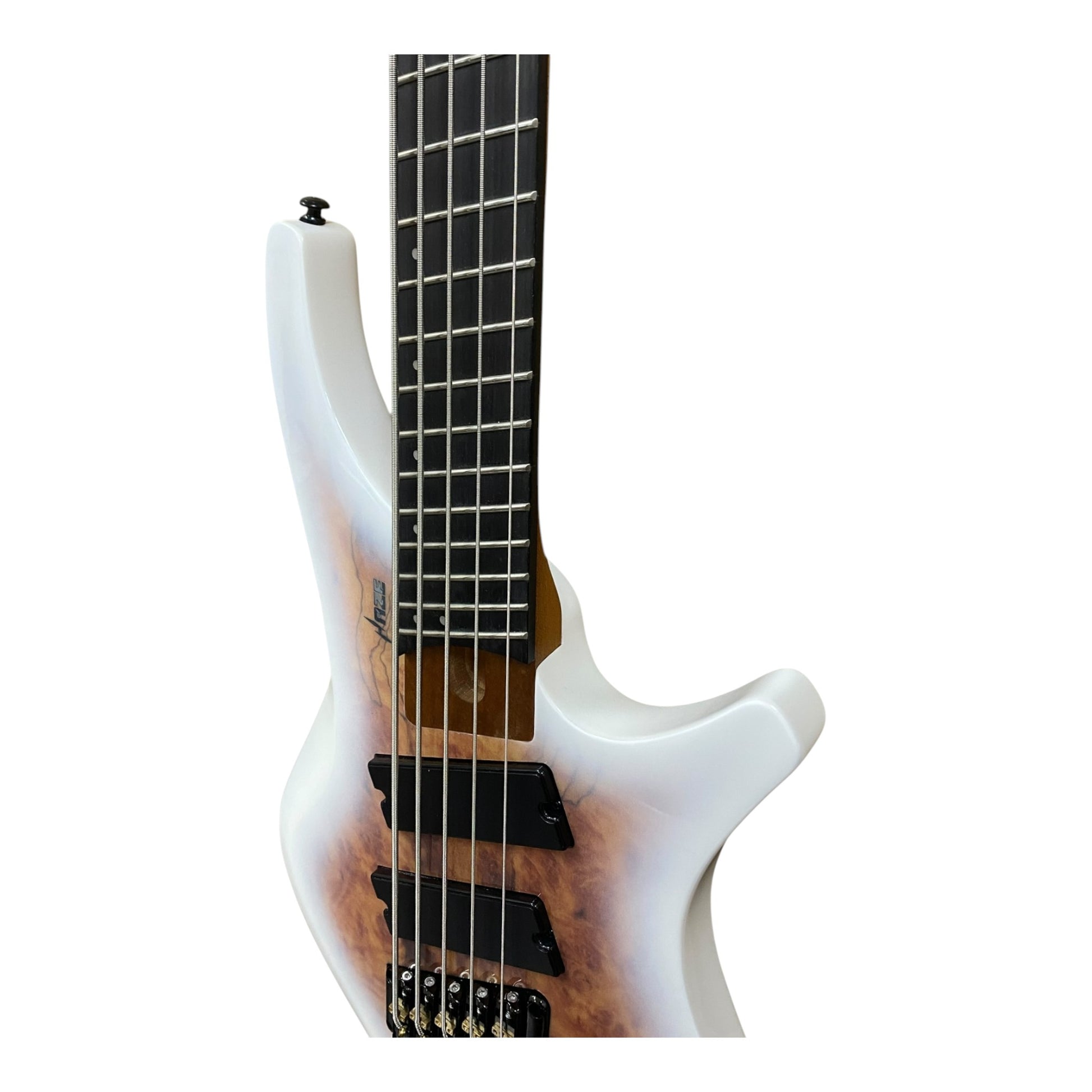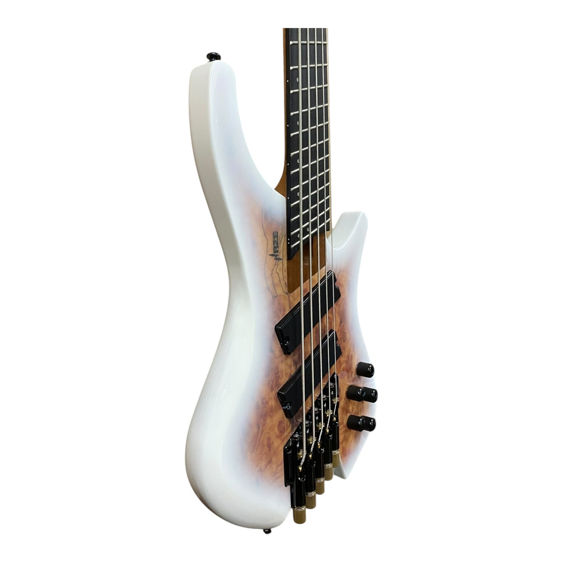 Haze HB5FFMS Voyager Series Headless Fanned Fret 5-String Electric Bass – Roasted Maple Neck, White Sunburst Finish, & Active BJ-80 Pickups