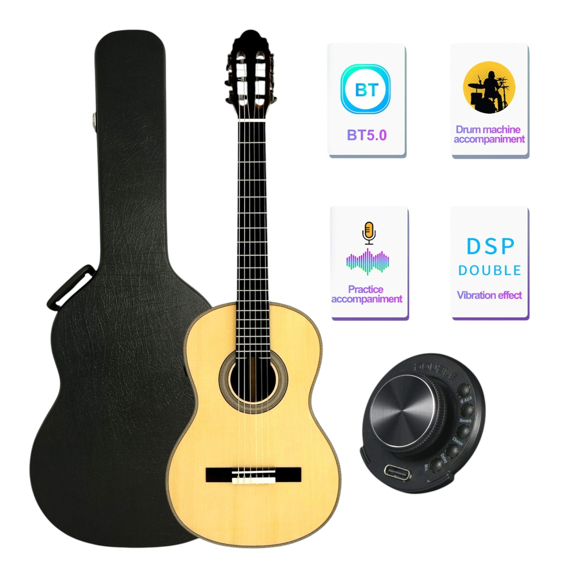 Equipped with the DOUBLE OS1 Resonance Pickup On-board Preamp and SFT Same Frequency Trans Guitar Pickup, this guitar offers a versatile range of amplified tones. The 3.7V rechargeable battery ensures extended playtime, making it a reliable companion for both stage and studio performances.